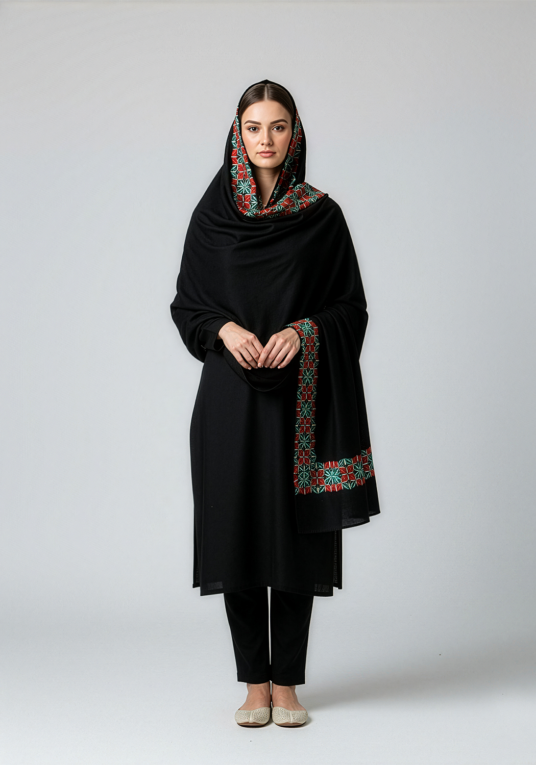 Product Features: Chiffon fabric, Embroidered and Black color